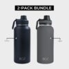 Boz Stainless Steel Water Bottles 2 Pack Bundle – Grey + Black Vaccum Insulated Water Bottles 32 Oz