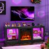 – Modern Fireplace TV Stand: This elegant TV stand has a sleek 58″ TV console & with a cozy 18″ electric fireplace. It fits TVs up to 65 in, suitable for living rooms, bedrooms & more. It has two open glass shelves for your media devices & accessories. Make your home more charming with this TV stand.