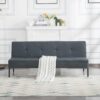 BSHTI 63 inch Futon Sofa Bed,Polyester Fabric Futon Sleeper Sofa with Upholstered for Livingroom,Dark Gray