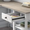 - Modern farmhouse desk features a stylish Pure White and Shiplap Gray two-tone finish with Dark Bronze hardware