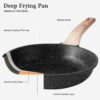 1: This cookware sets are included 1*8″ frying pan, 1* 9.5″ frying pan, 1*2.2QT sauce pan with glass lid, 1*4.5QT deep frying pan with lid, 1*5QT stock pot with glass lid, and 1*9.5″ baking pan. This 10-pieces granite pots and pans set is everything you need to get cooking in your kitchen. Not just that, the cooking set also makes an appreciable housewarming gift or holiday gift for your loved ones.
