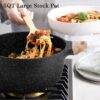 2: Our pots and pans use scratch-proof nonstick granite coating, which can keep food sliding smoothly along the surface, preventing food to stick, and making cooking easier. Sturdy interiors can avoid chipping and coming off.