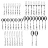 – 8 salad forks, 8 dinner forks, 8 dinner knives, 8 teaspoons, 8 dinner spoons, serving spoon, slotted spoon & chrome storage tray