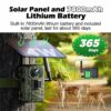 Equipped with a 7800mAh rechargeable built-in power supply that can be powered by a 4W solar panel. Enjoy uninterrupted power with its solar-powered design that eliminates the need for frequent battery replacements. Save money and time with our innovative solar-integrated trail camera. The 10-foot cable between the camera and solar panel allows for flexible placement of the panel in sunnier spots for faster energy conversion