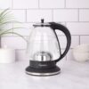 The iconic Capresso H2O Glass water kettle is constructed of heat-resistant glass and has ounce and cup markings for easy filling. A gleaming stainless steel dome covers the highly efficient concealed heating element which boils water quickly, quietly and safely.
