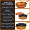– MULTI-USE COOKER PAN: Cast iron helps distribute and heat retention evenly so it can be used to Stir fry, braise, sear, deep fry, bake and more. It works on all cooking ranges such as gas, electric, ceramic, and induction.