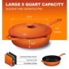Bruntmor’s Deep Built Cooker Non Stick is a multi-use cast iron sauté pan that is perfect for cooking a variety of dishes. It comes with a lid, stainless steel knob for a sure grip, and dual pouring spouts for an ergonomic design. It is oven safe up to 500 Degrees Fahrenheit and is easy to clean with light soap and warm water. Get the perfect heat retention and distribution for your cooking needs with this versatile pan.