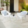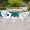 - Our set is beautifully hand-woven in all-weather wicker on sturdy, powder-coated steel frames.