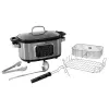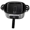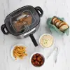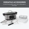 - Dishwasher-safe accessories include steam rack, frying basket, slotted spoon and tongs
