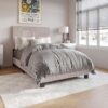 – The headboard boasts timeless elegance with vertical channel-stitching, adding a touch of sophistication to any bedroom decor.