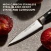 - High-carbon stainless steel creates stronger, harder blades to resist stains, rust and pitting
