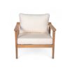 Christopher Knight Home Mid-Century Modern Outdoor Lounge Chair, Solid Wood Frame, Beige Cushion, Set of 2