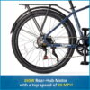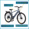 Take on your next adventure with the Concord 27.5″ Commuter Step-Over Electric Bike. This adult electric bike is equipped with a reliable 350W high-speed brushless rear hub motor, providing a torque curve that seamlessly augments your pedaling power. The 36V 10Ah battery, which is portable and lockable, offers a range of up to 20 miles per charge. The user-friendly display provides real-time information such as pedal assist level, power status, speed, trip distance, and headlight switch control. The gear level operates smoothly, mimicking a traditional bicycle without resistance. Additionally, the Shimano 7-speed gear with trigger shifters and derailleur ensures quick, precise gear shifts, enabling you to navigate any terrain with remarkable ease. Bring home the Concord 27.5″ Commuter Step-Over Electric Bike today.