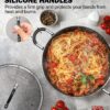 Glass Lid and Silicone Handles: Tempered glass lids with steam vents let you monitor cooking; Riveted stainless steel handles with silicone grips ensure a firm, heat-resistant hold; The perforated handle allows for easy hanging