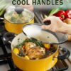 – SEE-THROUGH LIDS – The pots and pans set is equipped with tempered glass lids and steam vents that allow steam to escape for viewing food while cooking.