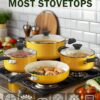 Cook N Home Nonstick Pots and Pans, 10-Piece Ceramic Kitchen Cookware Sets, Cooking with Saucepans, Frying Pans, Dutch Oven Pot with Lids, Yellow