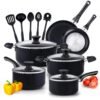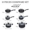Cook N Home Pots and Pans Nonstick Cooking Set includes Saucepan Frying Pan Kitchen Cookware 15-Piece, Stay Cool Handle, Black