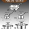 – Easy To Clean Our stainless steel cooking pan applies reflective finish inside and out for appearance makes cleanup effortless Dishwasher safe. These pots and pans will not discolor, react with food, or alter flavors, keeping your meals safe and healthy.