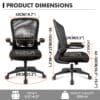 Coolhut Ergonomic Office Chair, Task Chair, Comfort Desk Chair with Adjustable Lumbar Support and Flip up Arms, 300lb, Black