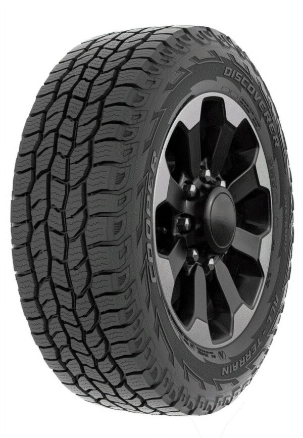 The Cooper Discoverer All-Terrain 245/70R16 107T All- Terrain Tire has a 60K (SUV) 55K (LT) Treadwear Warranty. The tread design and internal construction helps the tire fight uneven wear to attain treadwear warranty. Sound Barrier Walls in the shoulders of the tire help keep tread pattern noise to a minimum. Repeating pitch sequence helps provide a smooth ride. Silica tread compound helps the tire grip the road in wet weather. Circumferential grooves and increased siping in the tread design help push water out of the tire’s way for better wet handling. Snow groove technology helps bite into snow providing confidence in winter driving. Similar to its predecessor, the tread pattern kicks out stones with the stone ejectors (in the intermediate grooves). Stone barriers keep stones from drilling into tires. Tread compound delivers off-road performance on unpaved roads.