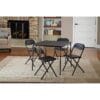 - 5-piece card table and chair set is available in black to complement virtually any decor