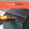 – 12 Functions: Chicken, Steak, Seafood, Veggies, Fries, Frozen, Air Fry, Reheat, Broil, Roast, Bake, and Keep Warm.