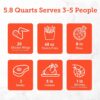 - Capacity: 5.8 qt / 5.5 L (serves 3a 5 people)