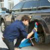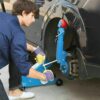 This is our fender roller, it can increase the clearance between the tire and the fender to fit larger tires, repair the dent or damage of the fender. This fender roller uses a small wheel made of nylon to roll back and forth on the wheel arch, flatten the dent parts. It fits most cars and light trucks with 4 and 5 lugs. Equipped with adjustable arm has second telescoping arm with roller allows this fender roller for 180 degrees wheel swivel. It is an effective tool for repairing or reforming fender which is sturdy and durable. Do not hesitate to buy it.