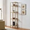 Crosley creates a refreshing update to the classic bookcase with the Aimee narrow etagere. This easy-to-assemble wall unit features tempered glass shelves and a sturdy steel frame finished in elegant antique gold. Designed to look great on its own or to seamlessly bunch with our popular Aimee etagere, the Aimee narrow etagere will create a cohesive sense of sophistication throughout any room.