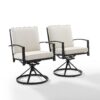 Crosley Furniture Kaplan Fabric Outdoor Swivel Chair Set in Oatmeal (Set of 2)