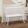 This versatile bench is a great accent piece providing extra seating in any room in the home. Solid wood construction features traditional styling and a modern finish. A classic spindleback design with armrests and shaped seat for comfort.