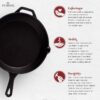 – This cast iron skillet comes complete with a non-slip, heat-resistant handle cover to keep your hand safe while cooking or serving food