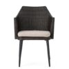 Cyrus Outdoor Wicker Dining Chairs with Cushions, Set of 4, Multibrown, Textured Beige
