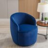 Damerin Modern Blue Velvet Swivel Barrel Chair