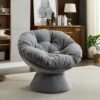 Damerin Modern Dark Gray Chenille Swivel Papasan Chair