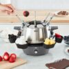 – Comes with 8 color-coded Fondue Forks so your guests know whose is whose. Convenient Fork Rack helps reduce drips.