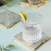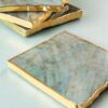 Our aventurine agate stone coasters protect your beautiful kitchen surfaces, tabletops, dining tables or bar counters from drink ring stains. These semi-precious stone coasters with gold gilded edges, are handcrafted by skilled artisans from Rajasthan, India.