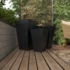 – The square shape of these matte dark gray flower pots for outdoor plants offers a unique twist on traditional pots, providing a contemporary look that’s sure to impress