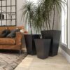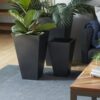 – DecMode 17″, 21″, 25″H Light Weight Minimalistic Dark Gray Metal Geometric Planter with Tapered Base (3 Count) makes a perfect addition to any home