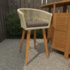 – Outdoor bar stool carries beige rope with taupe gray cushion and brown wood legs with silver foot support
