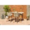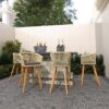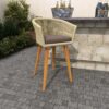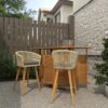 – Patio bar chair has a water-resistant aluminum seat covered in woven polypropylene rope, a polyester cushion, and 4 acacia wood legs