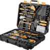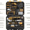Forged from steel and finished in high-polish chrome, the DEKO 198 Tool Set provides strength, durability, and anti-corrosion protection exceeding ANSI critical standards. This practical kit boasts a rich assortment of updated tools, including professional-grade wrenches, ratchets, a hammer, tape measure, pliers, wrenches, and more, complemented by a variety of 1/4-inch screwdriver bits, encompassing Phillips, slotted, square, star, and pozi types. All tools are neatly stored in a sturdy and compact storage case, ensuring secure, clean, organized, and easily accessible storage, facilitating convenient portability. The case’s sturdy interior and efficient organizer keep tools securely in place, adding an extra layer of convenience to this comprehensive and high-quality DEKO 198 Tool Set.