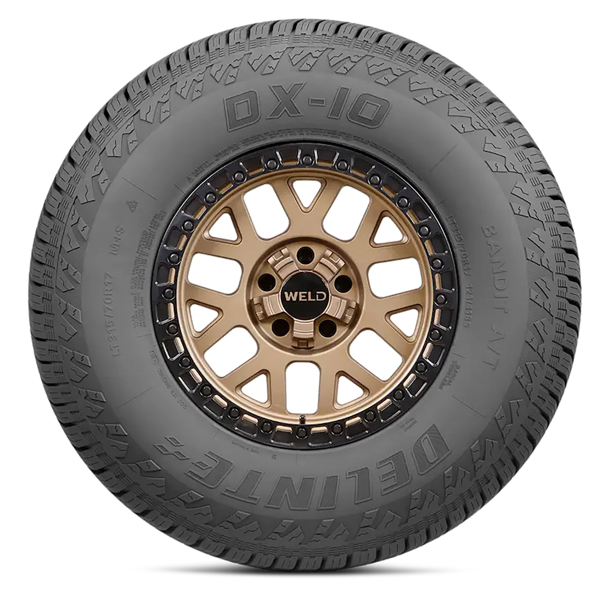 The DX-10 Bandit A/T from Delinte is an all-terrain tire. Offering a long tread life, the DX-10 Bandit A/T’s aggressive tread pattern enhances the looks of trucks and SUVs.