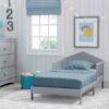 There’s no place like the Home(stead) Wood Toddler Bed by Delta Children! The dreamiest kids’ bed, it combines style and safety with its peaked roof design, durable wood construction, low height and attached guardrails.