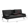 Derzers Faux Leather Futon with Cupholders and Pillows, Black