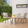 – ROBUST & RELIABLE: Crafted with a plated steel frame and all-weather PE wicker, this set is designed to withstand the elements. It’s not only rust-proof but also sturdy enough to support up to 275lbs per chair, providing a secure spot to relax with friends and family.