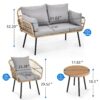 Dextrus 4-Piece Patio Furniture Wicker Outdoor Bistro Set, All-Weather Rattan Conversation Loveseat Chairs for Backyard, Balcony and Deck with Soft Cushions and Coffee Table – Gray