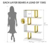 Dextrus 5 Tier Bookcase, S shape Geometric Bookshelf Wood Z-Shelf Modern Free Standing Bookshelf Storage Organizer for Living Room Bedroom Home Office, Gold