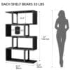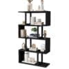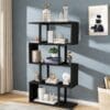 Dextrus 5-Tier S-Shaped Bookshelf, Geometric Bookcase Wooden Z-Shelf Storage Modern Open Shelving, Freestanding Display Bookshelf for Living Room Home Office, Black