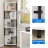 – ENHANCED SAFETY FEATURES: Safety is paramount with this black corner bookshelf. Equipped with upgraded metal anti-tipping devices and an extra supporting foot, it offers enhanced stability and prevents tip-over accidents. The round edges of the bookshelf provide protection against accidental scratches, ensuring the safety of both you and your family.